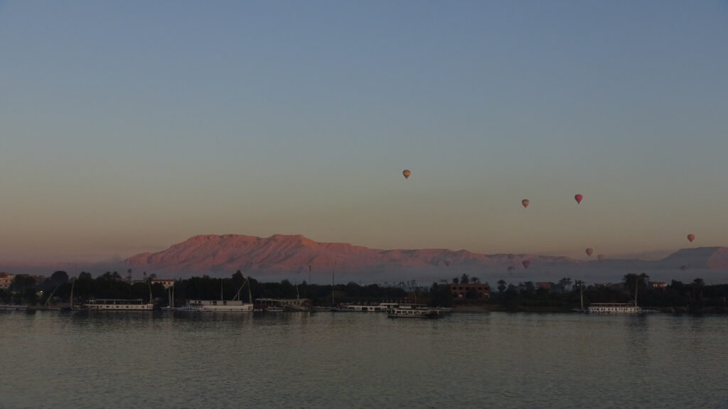 Our ship leaves at 2pm, and that’s all the time we have to see the grave of Hatshepsut and the Valley of the Kings! We got up before 6am to make sure we can make it, and had our tea watching the sunrise from the ship deck. Well, except the city is in the way.