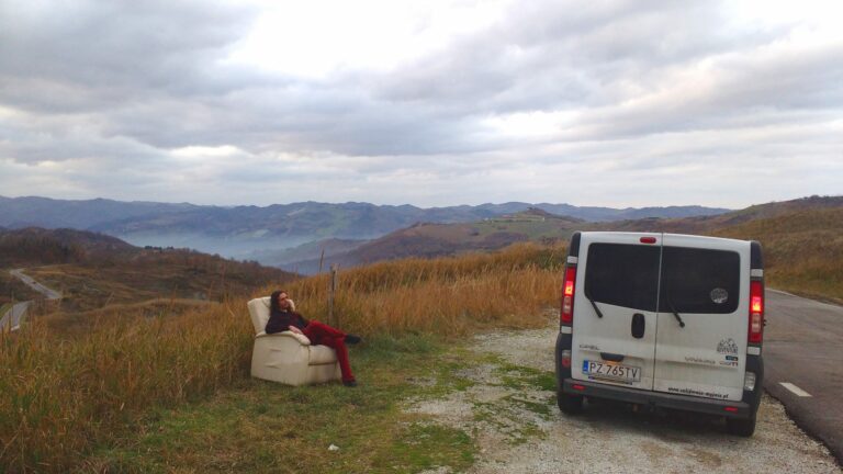 Another mountain range, another serpentine road. This time the breathtaking alpine views are replaced with monasteries and castles on mountaintops, and clouds you can drive into, and lonely armchairs. The driving in the clouds but was pretty intense, actually – …