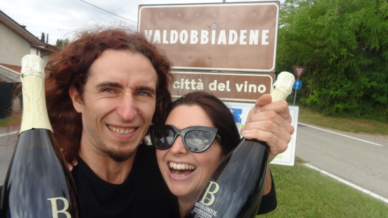 Wine land. Arrived in he evening, drove up a very steep road to a parking spot. Walked down for some Prosecco, started raining, walked back up in the rain, soaked. Next day watched sunrise from the hill we were parked …